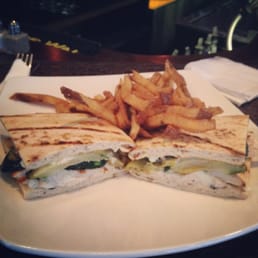 Delicious yummy turkey burgers! We went here after a show one night and we were the last table in the restaurant/bar. We ordered the turkey burgers and were so incredibly pleased. The waiter was friendly and efficient. I would happily go back here for the turkey burgers. I love the location, near our hotel and broadway shows. I wish I didn't have to listen to the blaring music from the kitchen as well as the music in the main bar area. I would go back!